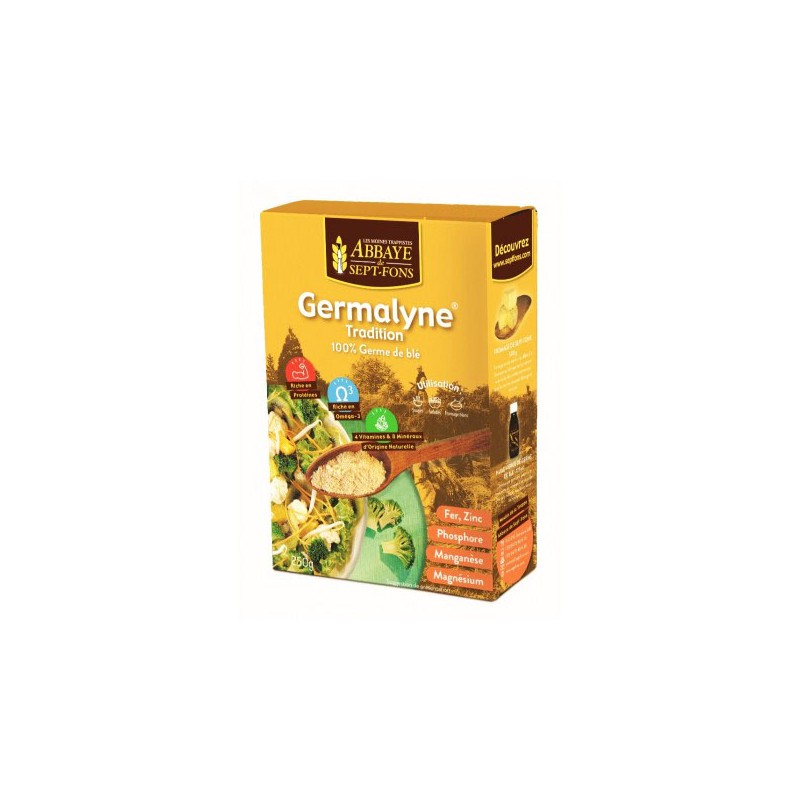 Germalyne tradition est un complément alimentaire 100% germe de blé (non-germé), que les moines trappistes de Sept-Fons ont mis au point il y a plus 75 ans.